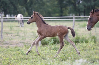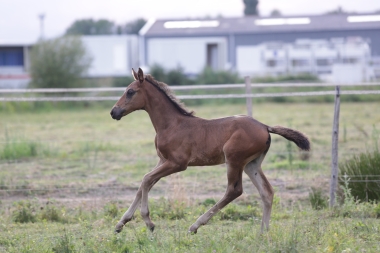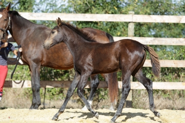 Le croisement du meilleur étalon mondial Diamant de Semilly et d'Okla Gaffelière ISO 140 très imprégnée de sang aussi bien du côté de son père que de sa mère. Le résultat est juste magnifique avec une pouliche chic, expressive, légère tout en étant bien armée dans ses articulations. Une aubaine pour le sport ou pour l'élevage.
