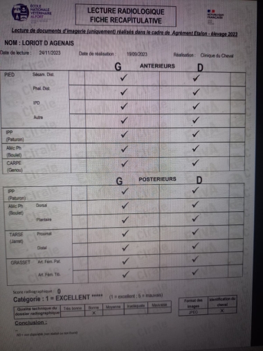 Vainqueur de l'étape de St Etienne de Tulmont des étalons de 2ans en septembre 2023 avec la note de 16/20.
